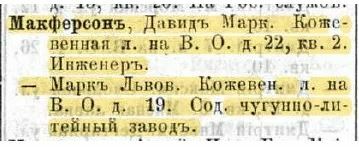 М. Макферсон в 1860-е тоже жил на Васильевском: