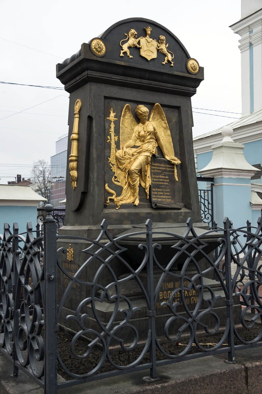 Обратите внимание, что эти три человека скончались в один день — день их казни. Волынский, Хрущев и Еропкин были казнены за участие в антиправительственном заговоре и похоронены на Сампсониевском кладбище. Только к концу XIX века на их могиле был воздвигнут памятник.