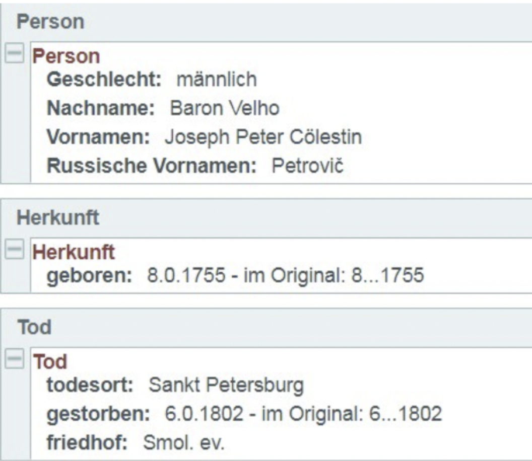 Теперь мы лучше понимаем, кем был Иосиф Вельо и чем он занимался. Скончался он внезапно, в 1802 году, оставив жену и маленьких детей, и был погребен на Смоленском лютеранском кладбище. Долгое время его могила считалась утраченной, но в этом году, к счастью, была найдена усилиями Т. Жильцовой.