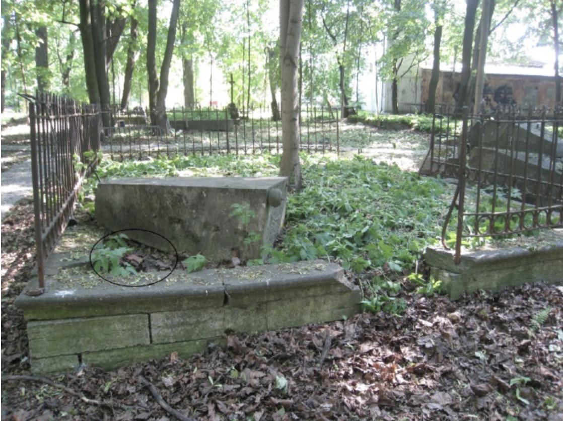 Забегая вперед, скажу, что в семейном захоронении Вельо нам удалось найти еще одну плиту с надписью MORTUA DIE X MARTH ANNO MDCCCXXXVIII (умерла в марте 1838 года), и эта дата совпадает с известной датой смерти внучки барона, Екатерины. Поэтому семейное место со стопроцентной точностью принадлежит именно Вельо — спасибо Роберту Лейнонену за сохранение надписи с надгробия, а Татьяне Жильцовой — за верную расшифровку латинского текста!